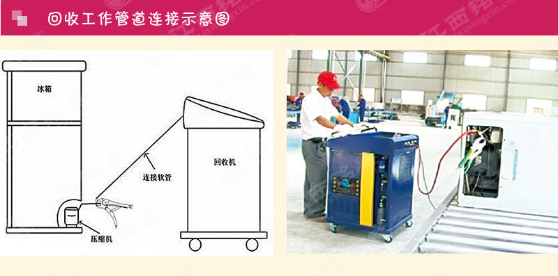 一種回收制冷劑的設備,用于回收制冷機械(冰箱、空調、冷柜等制冷機)中的制冷劑?;厥盏耐瑫r又對制冷劑進行一定的處理,如干燥、雜質的過濾、油分等,以便于制冷劑的二次利用。